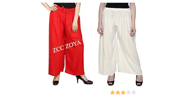 Buy Zcc Zoya Collection Women Rayon Lower Combo Plazzo Red Cream Color Pack Of 2 Plazo Plus Size Fits 40 48 Waist At Amazon In